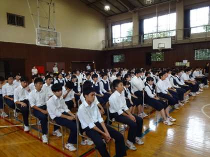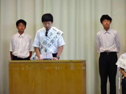 6時間目の生徒会役員選挙の様子です。立候補者はもちろん、推薦者も、そして、聞いている生徒も立派な参加態度でした。