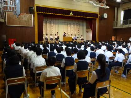 6時間目の生徒会役員選挙の様子です。立候補者はもちろん、推薦者も、そして、聞いている生徒も立派な参加態度でした。