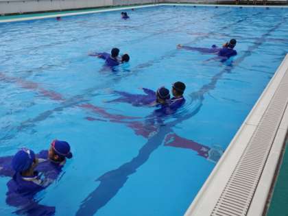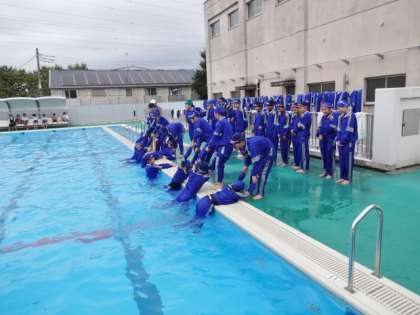 1年2・3組、体育女子。着衣水泳・溺者救助。万が一に備えて学んでおきます。