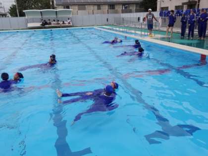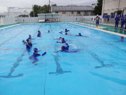 1年2・3組、体育女子。着衣水泳・溺者救助。万が一に備えて学んでおきます。