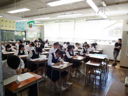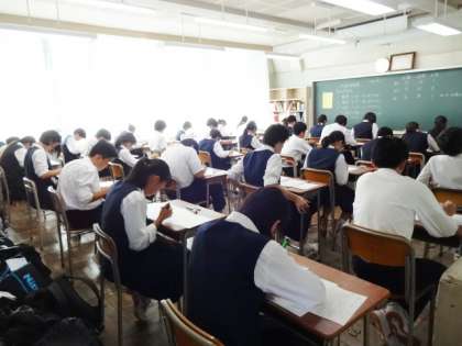 中間考査初日3教科目の国語です。3年生。