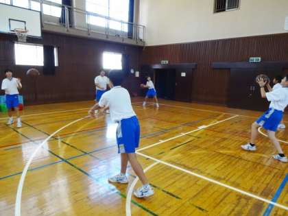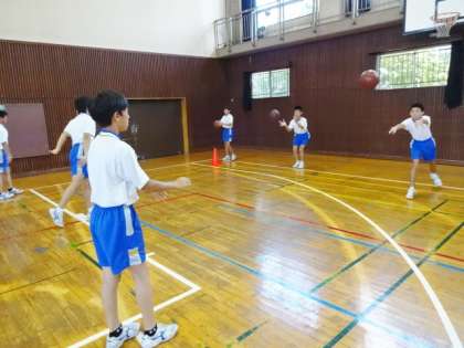 1年2・3組、体育男子。バスケットボールです。