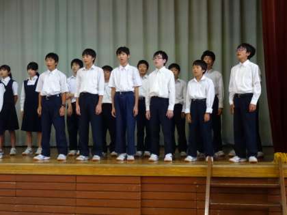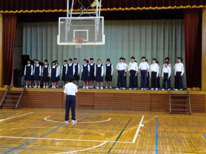 本番10日前。6時間目の合唱練習の様子です。演奏順1年1番5組。課題曲「Forever」自由曲「虹を渡って」