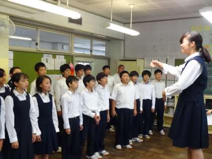 本番10日前。6時間目の合唱練習の様子です。演奏順1年5番1組。課題曲「Forever」自由曲「今日は君のBirthday」