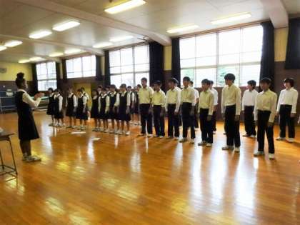 本番10日前。6時間目の合唱練習の様子です。演奏順2年1番4組。課題曲「風と」自由曲「リフレイン」