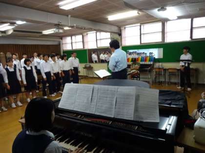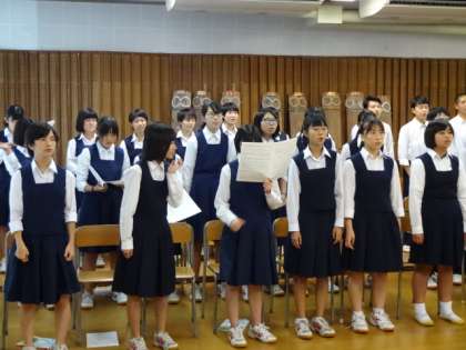 本番10日前。6時間目の合唱練習の様子です。演奏順3年1番3組。課題曲「信じる」自由曲「歌よ大地に響け」