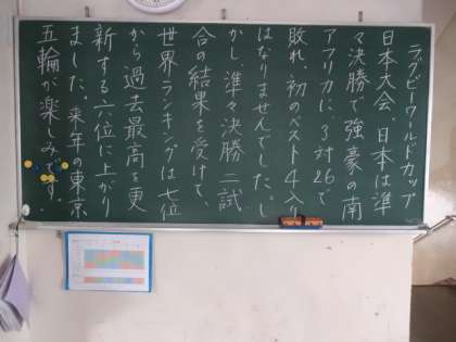 ラグビーワールドカップ、合唱コンクール、受験、ノーチャイムデー……。