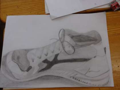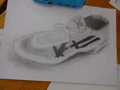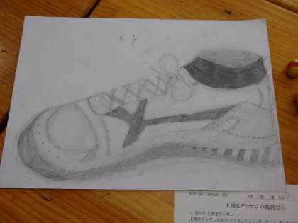 3年1組、美術。鉛筆デッサン鑑賞会。作品の数々です。