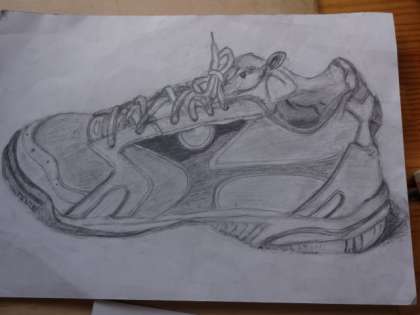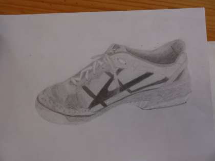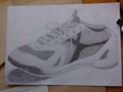 3年1組、美術。鉛筆デッサン鑑賞会。作品の数々です。