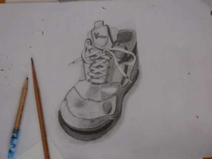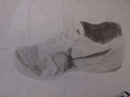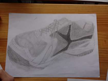 3年1組、美術。鉛筆デッサン鑑賞会。作品の数々です。