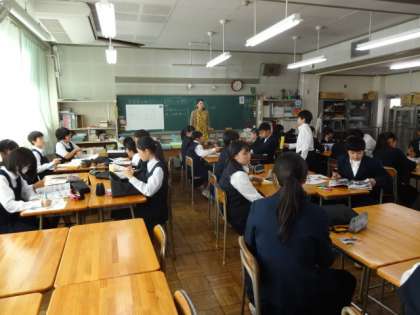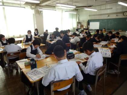 1年2組、美術。陰影のつけ方練習。6段階のグラデーションを使って、立体感を表そう!