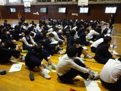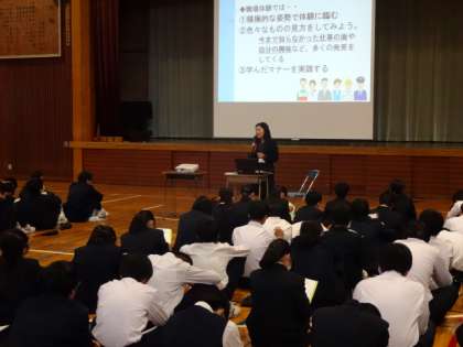 2年生が26日からの職場体験に向けて、ハローワーク学卒ジョブサポーターの方に講演をしていただきました。