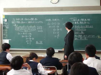 1年1組、数学。方程式を使って身の回りの問題を解く。