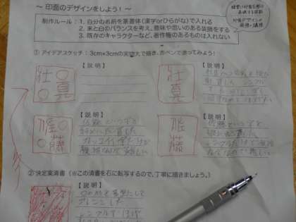 篆刻(てんこく)のデザインです。これを丁寧に彫っていきます。