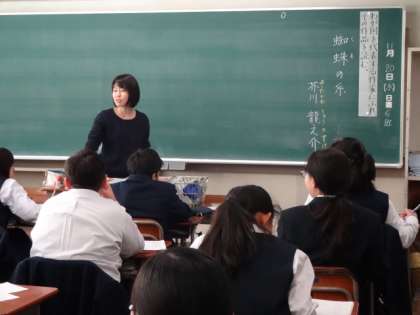 1年4組、国語。蜘蛛の糸 芥川龍之介。