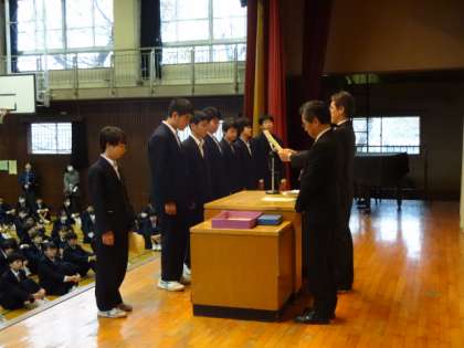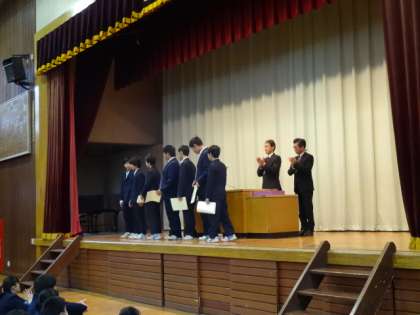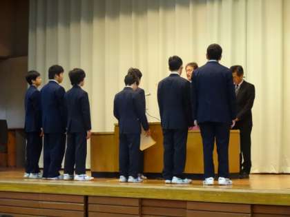 卓球部の団体、個人、ダブルスの表彰です。
