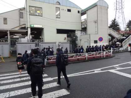 1年生が校外学習に出かけます。電車の混雑を考えて、1・2・3組が先に出発します。