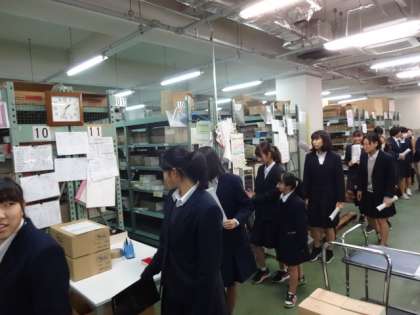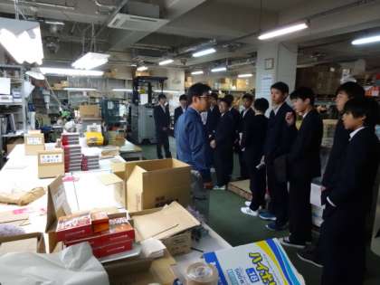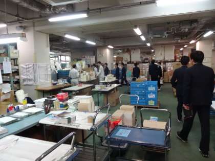 3年生が今日から一クラスずつ、近隣の三省堂流通センターを見学します。社会科の授業として、本の流通経路を実際に見学し、流通の仕組みや役割、流通の合理化について学びます。今日は4組でした。