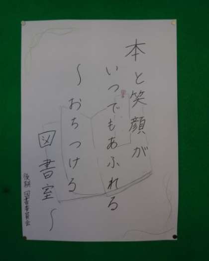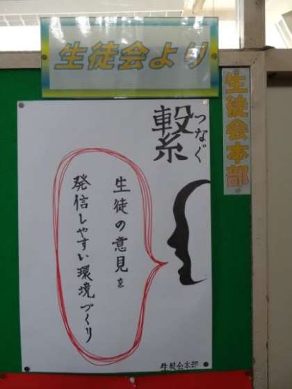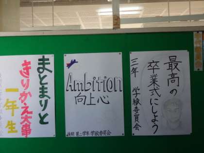 2階体育館入り口へ続く廊下に、後期委員会の目標が貼られています。