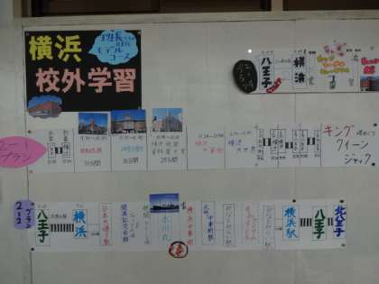 2年生の廊下に横浜校外学習モデルコースが貼られています。1月23日実施の予定です。
