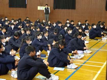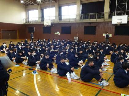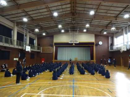 1年生が、スキー移動教室を明日に控えて前日指導を行いました。