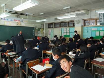 2・3年生は学校で授業です。2年2組、英語。比較、最上級です。