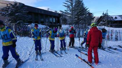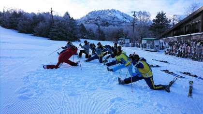 ゲレンデ到着。まだリフトが動いていません。アップ中です。天候は曇り、気温−9度。