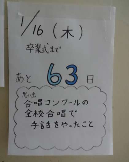 卒業式まであと63日。合唱コンクールの手話。