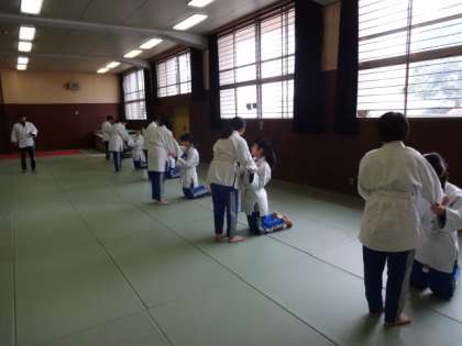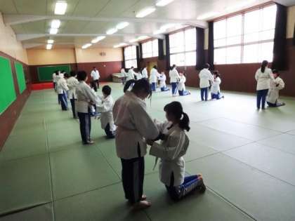 2年3・4組、体育女子。柔道。