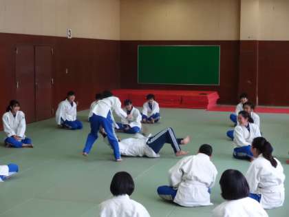 2年1・2組、体育女子。柔道。