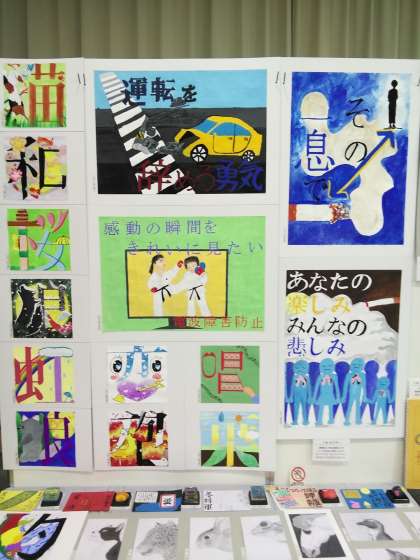おおるり展(八王子市公立小中学校作品展)の様子です。20日15時までエスフォルタアリーナで開かれています。