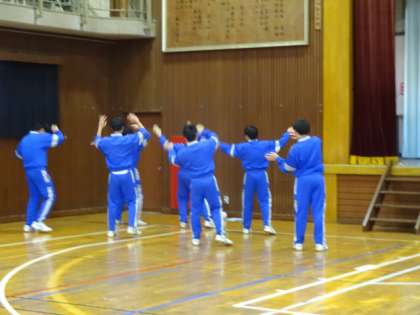 2年1・2組、体育男子。ダンス。