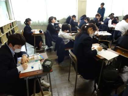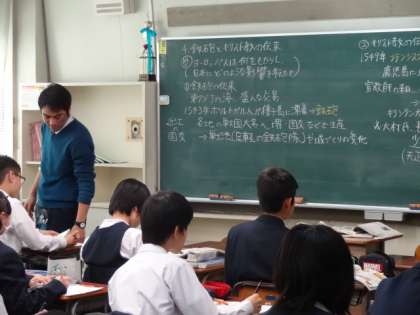 1年2組、社会。鉄砲とキリスト教の伝来。