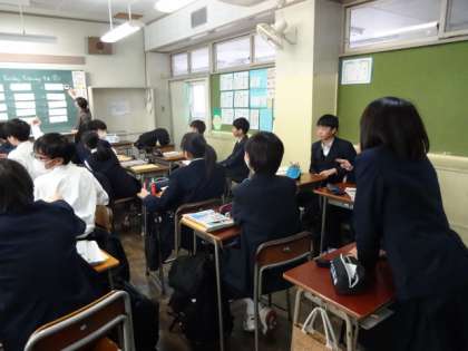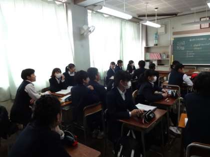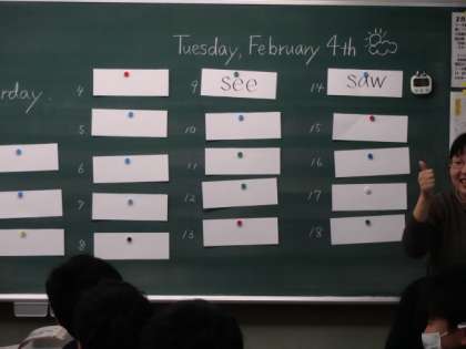 1年5組、英語。不規則動詞の原形と過去形。神経衰弱のようなゲーム形式で学習していました。