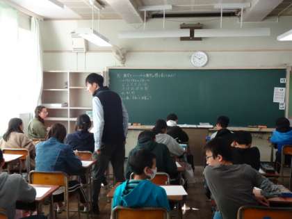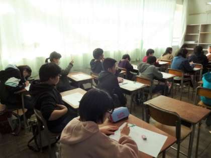今日は小中一貫教育の日。5時間目に、第八小・大和田小・高倉小の6年生と先生方が来校し、6年生は中学校の先生の授業を体験しました。先生方は、中学生の授業を含めて見学しました。その後、小中の先生が教科に分かれて、小中一貫教育について話し合いをしました。 小学生の体験授業、数学。数字をいくつかの数字の積で表してみよう!