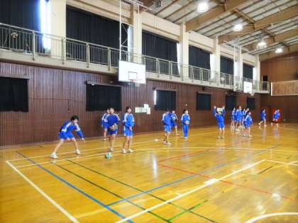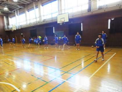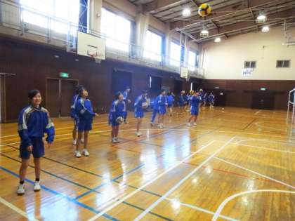3年1・2組、体育女子。バレーボールのサーブの練習をしていました。