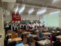 2年1・2組、英語。このクラスはユージン先生のスピーキングテストです。