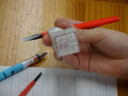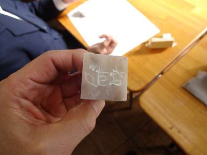 3年2組、美術。篆刻です。