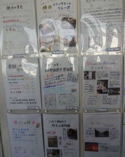 2年生の廊下に、一人一人の横浜校外学習のまとめが掲示されています。力作がたくさんあります。