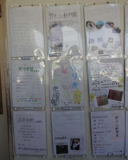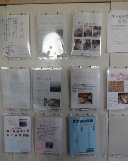 2年生の廊下に、一人一人の横浜校外学習のまとめが掲示されています。力作がたくさんあります。