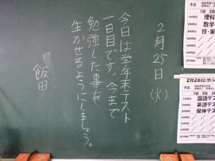 今日から3日間、学年末考査です。2時間目の数学の様子です。2年生。