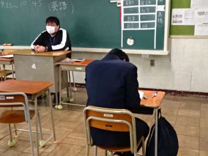 今日は学年末考査2日目です。英語の試験中です。頑張っています。7組。