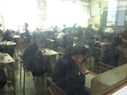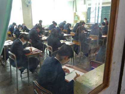 今日は学年末考査最終日です。今年度の定期考査は今日で最後です。みんな頑張っています。1年生、美術。