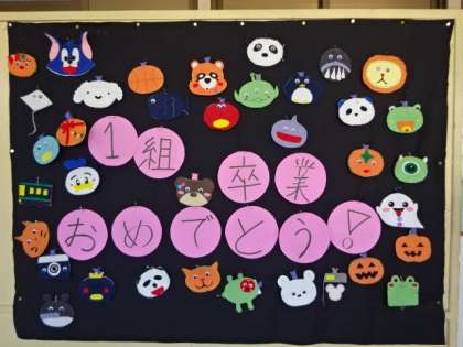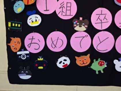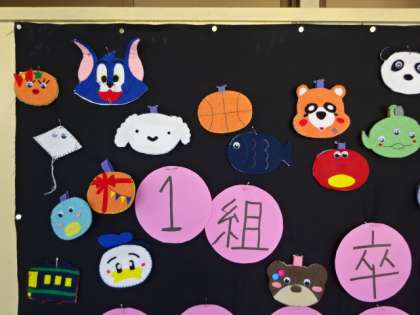 3年生が家庭科の授業で作製した「お名前ワッペン」です。赤ちゃんふれあい体験の時に使用する予定でした。良い出来ですね。せっかくですから廊下に貼りだしました。1組。