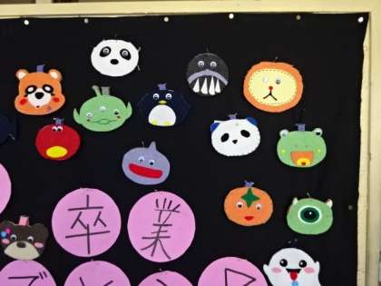 3年生が家庭科の授業で作製した「お名前ワッペン」です。赤ちゃんふれあい体験の時に使用する予定でした。良い出来ですね。せっかくですから廊下に貼りだしました。1組。