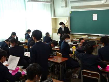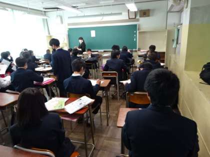 放送で修了式を行った後、各クラスで学級活動を行いました。1年3組。