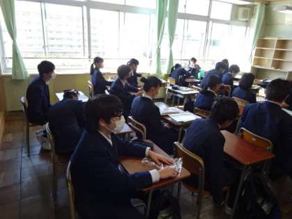 放送で修了式を行った後、各クラスで学級活動を行いました。2年1組。