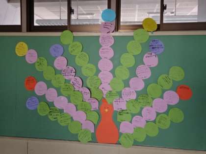 明日の卒業式に向けた準備の様子です。廊下の壁の装飾が終わりました。