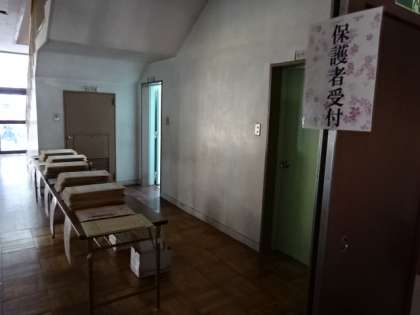 受付を済ませ、階段を上り、体育館の入り口に着きます。