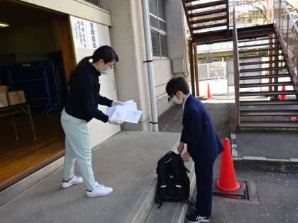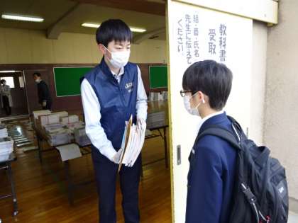 今日の午前中は2年生の教科書配布です。きちんとマスクをつけて登校しています。えらい!とてもスムーズに配布できています。どの生徒も教科書を大事にしまって帰っていきます。